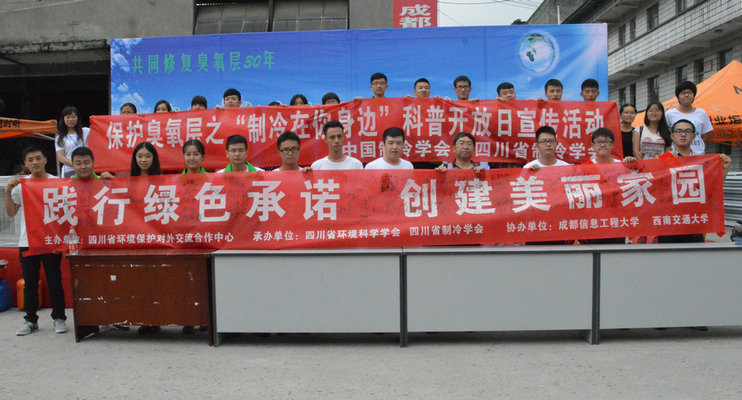 【本网讯】9月19日下午,由四川省环境保护厅主办,四川省环境保护厅对外合作中心、四川省环境科学学会、四川制冷学会、西南交通大学及开云官方app下载站承办的“共同修复臭氧层30年——践行绿色活动,创建美丽家园”为主题的9.16国际保护臭氧层日宣传活动在西南大型新旧货批发市场李家祠分场举行。